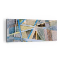 Cuadro sobre lienzo - Impresión de Imagen - Composición geométrica con líneas claras y azules. - 160x50cm - ¿Recto o inclinado? - Decoración de pared moderna para salón y dormitorio ARTTOR