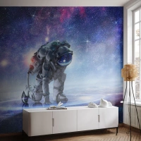 Fotomural Premium Sand - Astronauta arrodillado en un paisaje espacial - 100x70cm - Cielo estrellado sobre mí - Decoración de pared moderna para salón y dormitorio ARTTOR