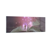 Cuadro sobre vidrio - Impresiones sobre Vidrio - Una figura pisa un libro abierto bajo una luz mágica. - 140x50cm - Una invitación a otro mundo - Decoración de pared moderna para salón y dormitorio ARTTOR