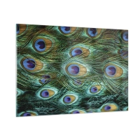 Cuadro sobre vidrio - Impresiones sobre Vidrio - Detalle de plumas de pavo real con ojos distintivos. - 100x70cm - Mirada de pavo real - Decoración de pared moderna para salón y dormitorio ARTTOR