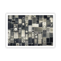 Cuadro sobre vidrio - Impresiones sobre Vidrio - Una composición de altavoces retro en tonos grises. - 100x70cm - Y todo fluye - Decoración de pared moderna para salón y dormitorio ARTTOR