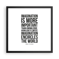 Póster en marco negro - Einstein, sobre el poder de la imaginación - 40x40 cm