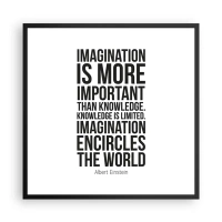 Póster en marco negro - Einstein, sobre el poder de la imaginación - 60x60 cm
