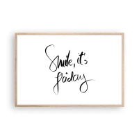 Cuadro sobre lienzo - Impresión de Imagen - Letras en blanco y negro Sonríe, es viernes - 70x100cm - La verdadera alegría - Decoración de pared moderna para salón y dormitorio ARTTOR