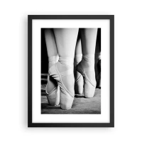 Cuadro sobre lienzo - Impresión de Imagen - Fotografía en blanco y negro de las zapatillas de ballet de una bailarina. - 100x70cm - En conjunto y al unísono - Decoración de pared moderna para salón y dormitorio ARTTOR