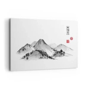 Cuadro sobre lienzo - Impresión de Imagen - Paisaje de montaña tradicional al estilo de la pintura de tinta japonesa. - 100x70cm - Más allá de lo lejano - Decoración de pared moderna para salón y dormitorio ARTTOR