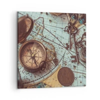 Cuadro sobre lienzo - Impresión de Imagen - Composición con brújula, llaves y un mapa antiguo en estilo retro - 70x100cm - Para el aventurero - Decoración de pared moderna para salón y dormitorio ARTTOR