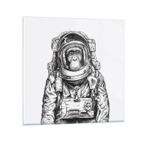 Reloj de pared - Reloj de vidrio - Gráfico de un astronauta en un traje espacial con cabeza de mono. - 30x30cm - Evolución alternativa - Decoración de pared moderna para salón y dormitorio ARTTOR