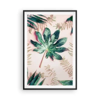 Póster en marco negro - Estudio de vegetación sobre fondo rosa - 70x100 cm