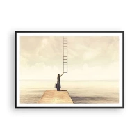 Póster en marco negro - Una mujer parada en un muelle con una escalera que conduce al cielo. - 100x70cm - Un viaje mágico - Decoración de pared moderna para salón y dormitorio ARTTOR