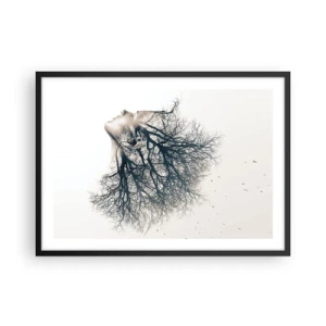 Póster en marco negro - Silueta creativa de una mujer y árboles. - 70x50cm - Escuchando el susurro de un árbol - Decoración de pared moderna para salón y dormitorio ARTTOR