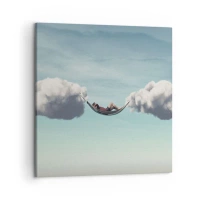 Cuadro sobre lienzo - Impresión de Imagen - Una persona relajándose en una hamaca suspendida en las nubes. - 80x120cm - La felicidad del momento - Decoración de pared moderna para salón y dormitorio ARTTOR