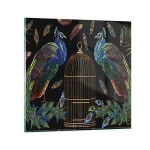 Cuadro sobre vidrio - Impresiones sobre Vidrio - Con plumajes reales - 30x30 cm