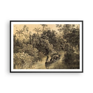 Póster en marco negro - Dibujo de una jungla con un barco en un río. - 100x70cm - Expedición a la fuente - Decoración de pared moderna para salón y dormitorio ARTTOR