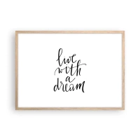 Cuadro sobre lienzo - Impresión de Imagen - Una pintura minimalista con las palabras 'vive con un sueño' en negro sobre un fondo blanco. - 70x100cm - Por supuesto - Decoración de pared moderna para salón y dormitorio ARTTOR