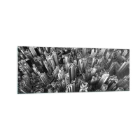 Cuadro sobre vidrio - Impresiones sobre Vidrio - Vista aérea de la ciudad en blanco y negro - 140x50cm - Cada vez más alto - Decoración de pared moderna para salón y dormitorio ARTTOR