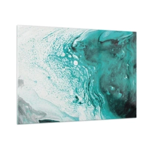 Cuadro sobre vidrio - Impresiones sobre Vidrio - Una pintura abstracta en tonos blanco y turquesa. - 100x70cm - Disolución en blanco y turquesa - Decoración de pared moderna para salón y dormitorio ARTTOR