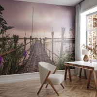Fotomural Standard Eco - Un puente de madera contra un cielo nublado. - 100x70cm - La tranquilidad de Asia - Decoración de pared moderna para salón y dormitorio ARTTOR