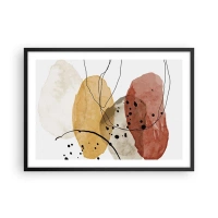 Póster en marco negro - Manchas abstractas en tonos beige, amarillo y rojo. - 70x50cm - Líneas y transparencias - Decoración de pared moderna para salón y dormitorio ARTTOR