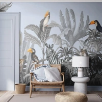 Fotomural Premium Canvas - Selva tropical con animales exóticos sobre un fondo gris. - 100x70cm - Un cuento de hadas africano - Decoración de pared moderna para salón y dormitorio ARTTOR