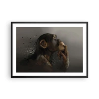 Póster en marco negro - Retrato de un mono en pose reflexiva sobre un fondo gris. - 70x50cm - La evolución del pensador - Decoración de pared moderna para salón y dormitorio ARTTOR
