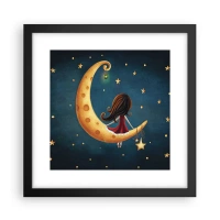 Reloj de pared - Reloj de vidrio - Una niña en la luna rodeada de estrellas. - 30x30cm - Érase una vez... - Decoración de pared moderna para salón y dormitorio ARTTOR