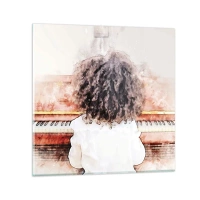 Cuadro sobre vidrio - Impresiones sobre Vidrio - Una chica con cabello tupido al piano - 70x100cm - Descubriendo un mundo nuevo - Decoración de pared moderna para salón y dormitorio ARTTOR