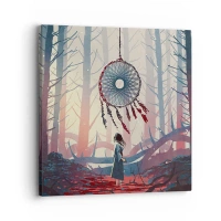 Cuadro sobre lienzo - Impresión de Imagen - Escena de bosque con un atrapasueños gigante. - 70x50cm - El ritual secreto de la felicidad - Decoración de pared moderna para salón y dormitorio ARTTOR