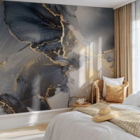 Fotomural Premium Sand - Composición abstracta de mármol con acentos dorados. - 100x70cm - La vida de una piedra - Decoración de pared moderna para salón y dormitorio ARTTOR