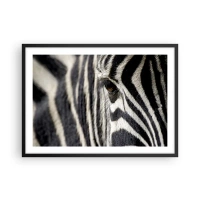 Póster en marco negro - Primer plano del ojo de una cebra con rayas blancas y negras - 70x50cm - Retrato a rayas - Decoración de pared moderna para salón y dormitorio ARTTOR