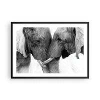 Póster en marco negro - Dos elefantes en un gesto tierno sobre un fondo monocromático. - 70x50cm - Una confesión sincera - Decoración de pared moderna para salón y dormitorio ARTTOR