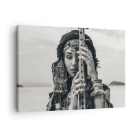 Cuadro sobre lienzo - Impresión de Imagen - Retrato de una mujer con joyas étnicas sosteniendo un instrumento en la mano. - 70x50cm - La música propia de Oriente - Decoración de pared moderna para salón y dormitorio ARTTOR