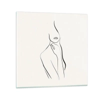 Cuadro sobre vidrio - Impresiones sobre Vidrio - Un boceto minimalista de la silueta de una mujer sobre un fondo claro. - 70x100cm - Una ola de melancolía - Decoración de pared moderna para salón y dormitorio ARTTOR