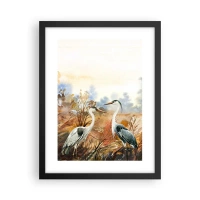Cuadro sobre lienzo - Impresión de Imagen - Dos garzas sobre el fondo de un paisaje otoñal. - 100x70cm - ¿A dónde nos dirigimos en otoño? - Decoración de pared moderna para salón y dormitorio ARTTOR