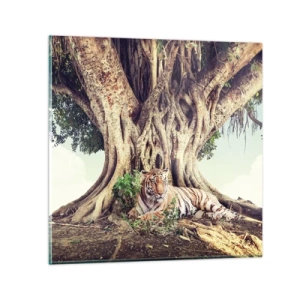 Reloj de pared - Reloj de vidrio - Un tigre descansando bajo un árbol extendido - 30x30cm - Una visión desde el Génesis - Decoración de pared moderna para salón y dormitorio ARTTOR