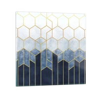 Reloj de pared - Reloj de vidrio - Patrón de cubo geométrico en tonos azules y dorados. - 30x30cm - Composición rítmica visual - Decoración de pared moderna para salón, cocina y dormitorio ARTTOR