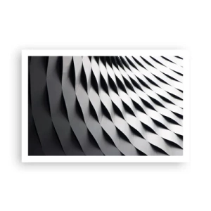 Póster - Patrón geométrico abstracto en tonos blanco y negro. - 100x70cm - En la superficie de las ondas - Decoración de pared moderna para salón y dormitorio ARTTOR