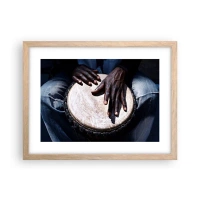 Póster en marco negro - Manos tocando un tambor djembé en una composición dinámica - 100x70cm - Vive a tu ritmo - Decoración de pared moderna para salón y dormitorio ARTTOR