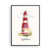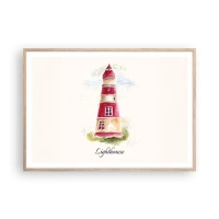 Póster en marco negro - Una pintura de acuarela de un faro sobre un fondo claro con una inscripción. - 100x70cm - Siempre observando - Decoración de pared moderna para salón y dormitorio ARTTOR