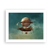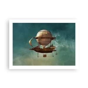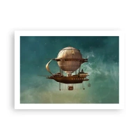 Póster - Un dirigible fantástico contra el cielo verdoso. - 100x70cm - Julio Verne saluda - Decoración de pared moderna para salón y dormitorio ARTTOR