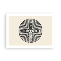 Póster - Laberinto circular en blanco y negro sobre un fondo claro - 100x70cm - Orden misterioso - Decoración de pared moderna para salón y dormitorio ARTTOR
