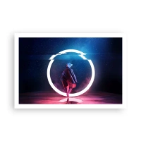 Póster - Un personaje en un entorno futurista con un círculo de neón. - 100x70cm - Entre mundos - Decoración de pared moderna para salón y dormitorio ARTTOR
