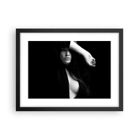 Póster en marco negro - Retrato elegante de una mujer en blanco y negro. - 100x70cm - Escuela de seducción - Decoración de pared moderna para salón y dormitorio ARTTOR