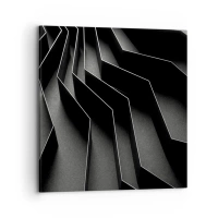 Cuadro sobre lienzo - Impresión de Imagen - Abstracción en blanco y negro con estructuras geométricas. - 100x70cm - Orden espacial - Decoración de pared moderna para salón y dormitorio ARTTOR