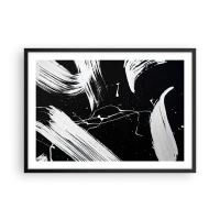 Póster en marco negro - Trazos blancos abstractos sobre un fondo negro - 70x50cm - Rompiendo la oscuridad - Decoración de pared moderna para salón y dormitorio ARTTOR