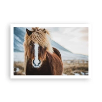 Póster - Caballo islandés frente a un paisaje montañoso - 100x70cm - ¿Puedes sentir la libertad? - Decoración de pared moderna para salón y dormitorio ARTTOR