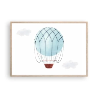 Póster en marco negro - Un globo pintado a mano sobre un fondo de delicadas nubes. - 100x70cm - Acariciando las nubes - Decoración de pared moderna para salón y dormitorio ARTTOR