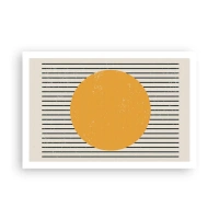 Póster - Un círculo amarillo sobre un fondo de líneas horizontales blancas y negras. - 100x70cm - El poder de la sencillez - Decoración de pared moderna para salón y dormitorio ARTTOR