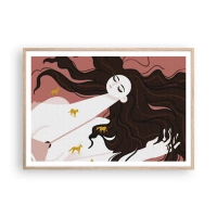 Póster en marco roble claro - Sueño de caballos dorados - 100x70 cm