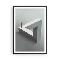 Póster en marco negro - Una figura parada sobre un triángulo de Penrose en tonos de gris. - 100x70cm - Y, sin embargo, es posible - Decoración de pared moderna para salón y dormitorio ARTTOR